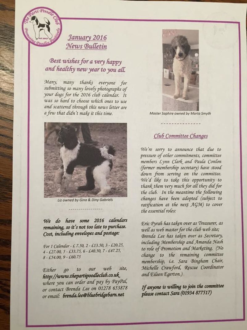 The Parti Poodle Club 2016 Calendar UK