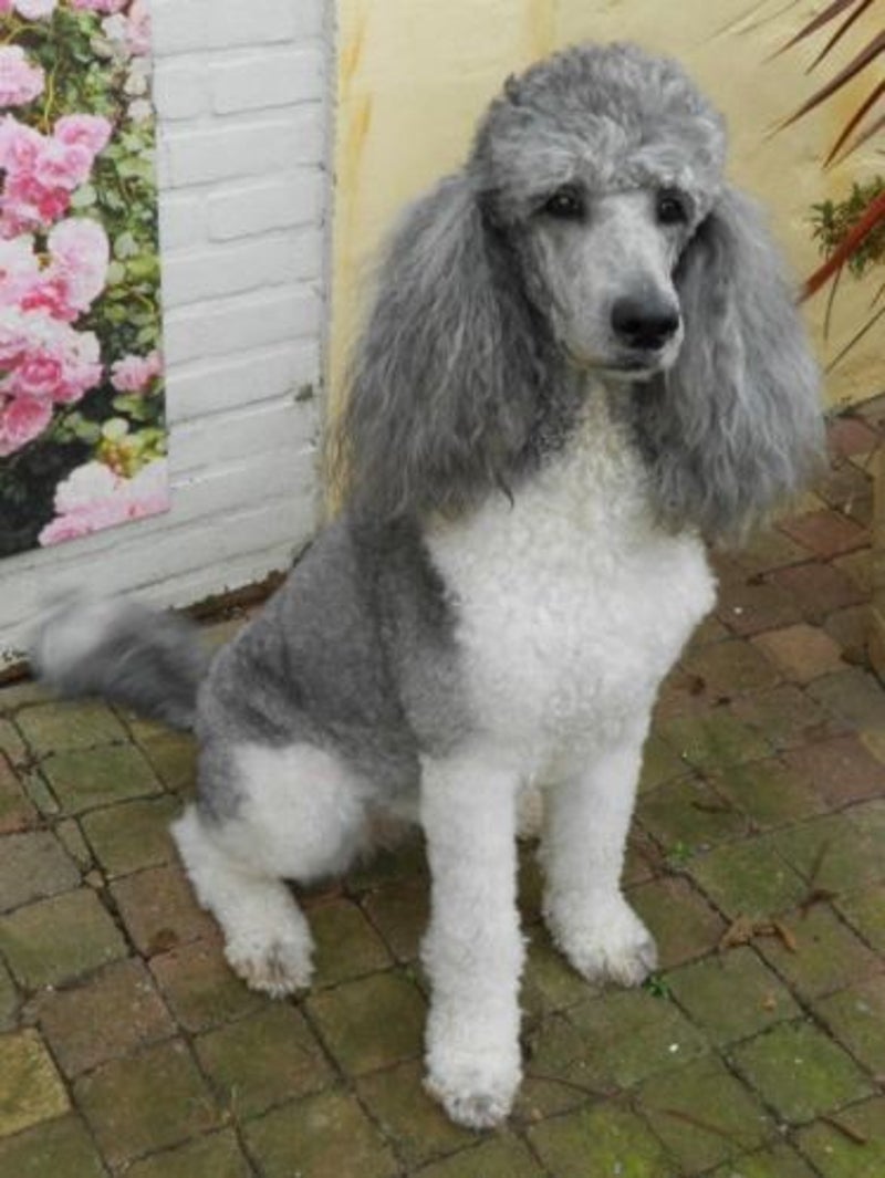 Grote- en middenslag poedel, niet toegestaan te fokken met HD C, D en E. Met als
